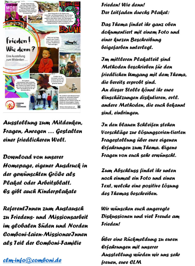 Am 29. Dezember haben wir in unserem Blog ein von den CLM Deutschland erstelltes Material zum Thema Frieden veröffentlicht.